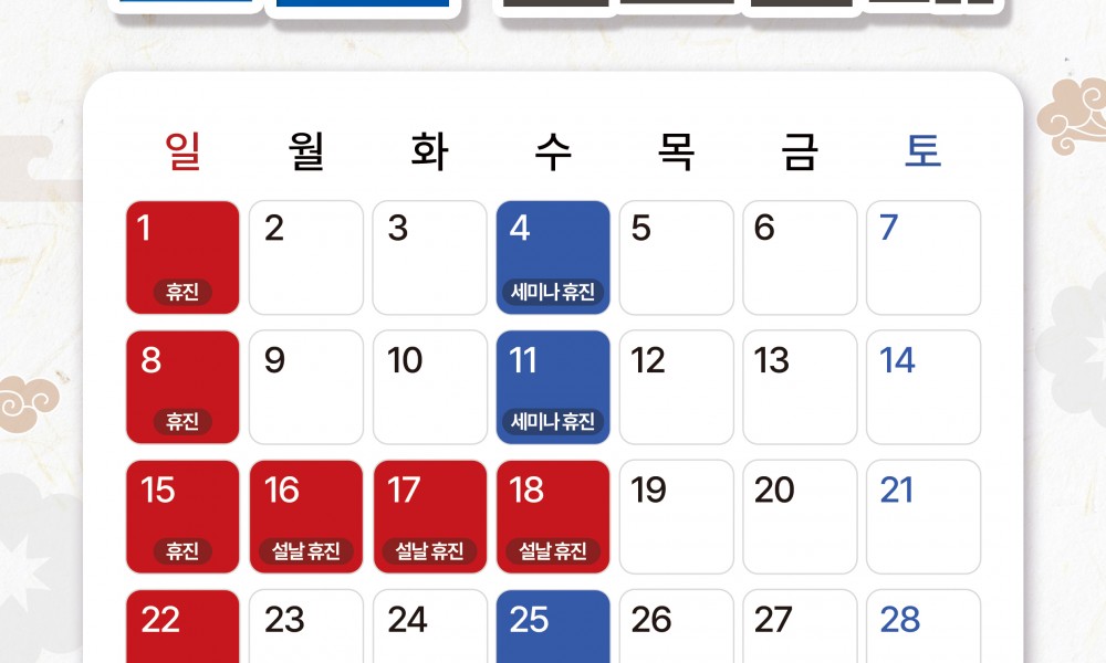 2/16(월)~2/18(수) 설연휴로 인해 휴진합니다.