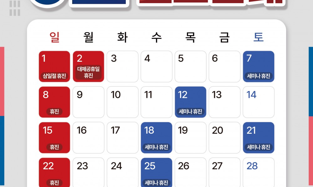 3/2(월)은 삼일절 대체공휴일로 인해 휴진합니다.